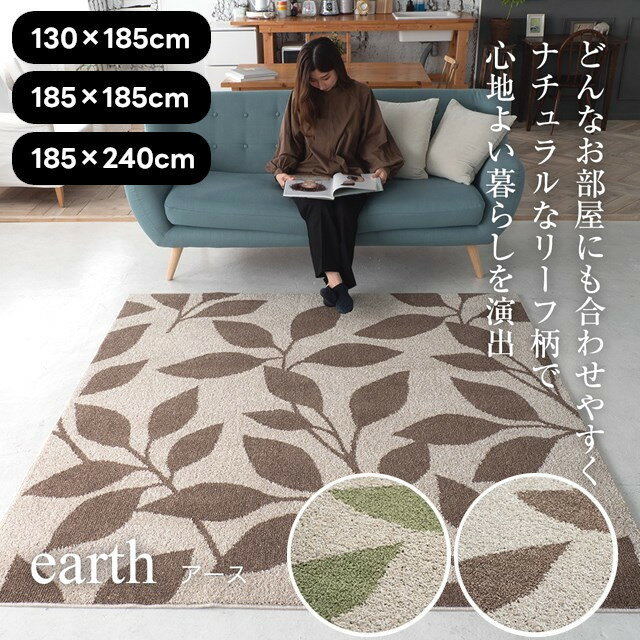 リーフ柄消臭・防音ラグシリーズ ラグ アース earth 130×185 185×185 185×240 スミノエ【ラグ ラグマット 絨毯 カーペット インテリア】