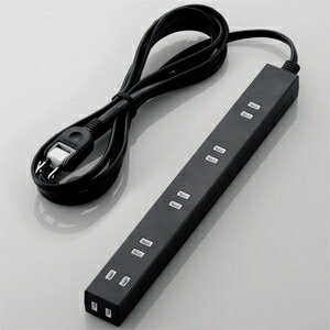 ELECOM スリムタップ 2ピン 6個口 180°スイングプラグ ほこり防止シャッター付 コード長2m T-NSL-2620BK
