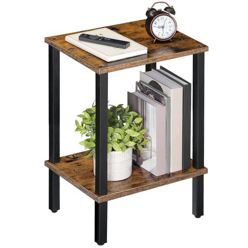 MAHANCRISサイドテーブル2段ベッドサイドテーブルソファ横テーブル小型コーヒーテーブル狭いスペース用工業風リビング・寝室・書斎に最適ヴィンテージブラウンETHR7901