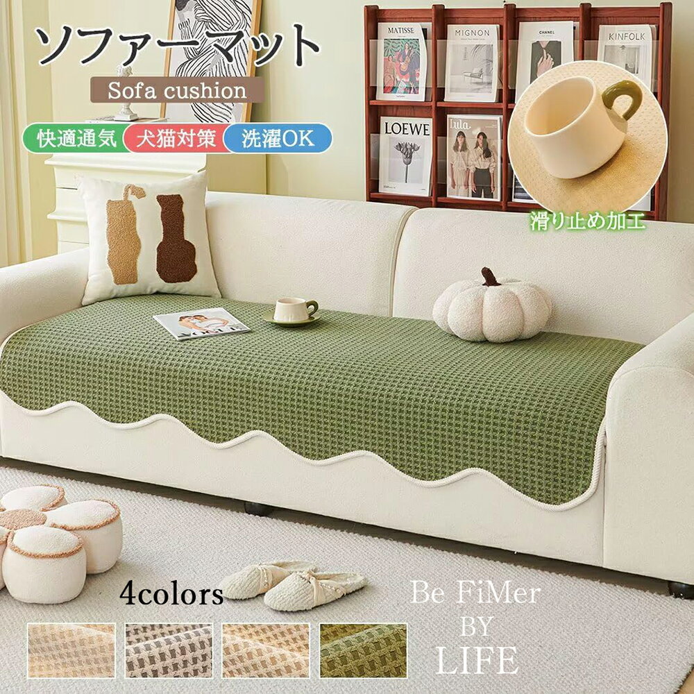 ソファカバー 110cm係 ソファパッド 3人掛け 2人掛け 1人掛け 4人掛け L字対応 肘あり/肘なし兼用 滑り止め付き 通気性 ペット対策(爪とぎ防止・毛髪不粘着) 防塵 汚れ防止 洗える 簡単着脱 ベッドカバーにも 四季対応 耐久性 丸洗い可能 ソファーシート カウチ リビング用