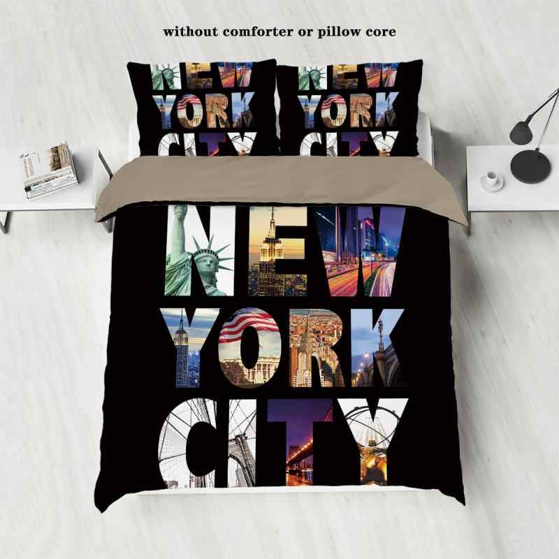 布団カバーセット ポリエステル100% 起毛素材 肌触りなめらか 北欧風 おしゃれ ウォッシャブル デジタルプリント マンハッタン タイムズスクエア柄 3点セット
