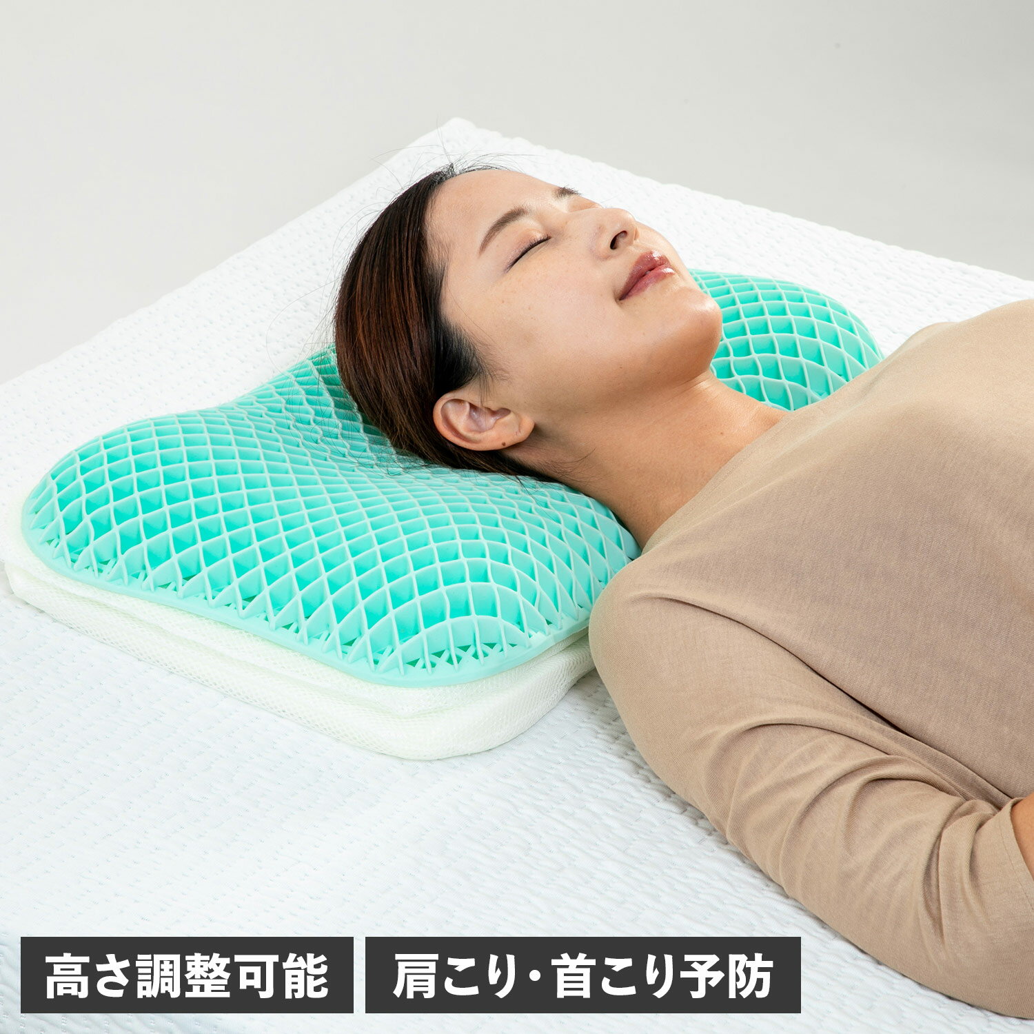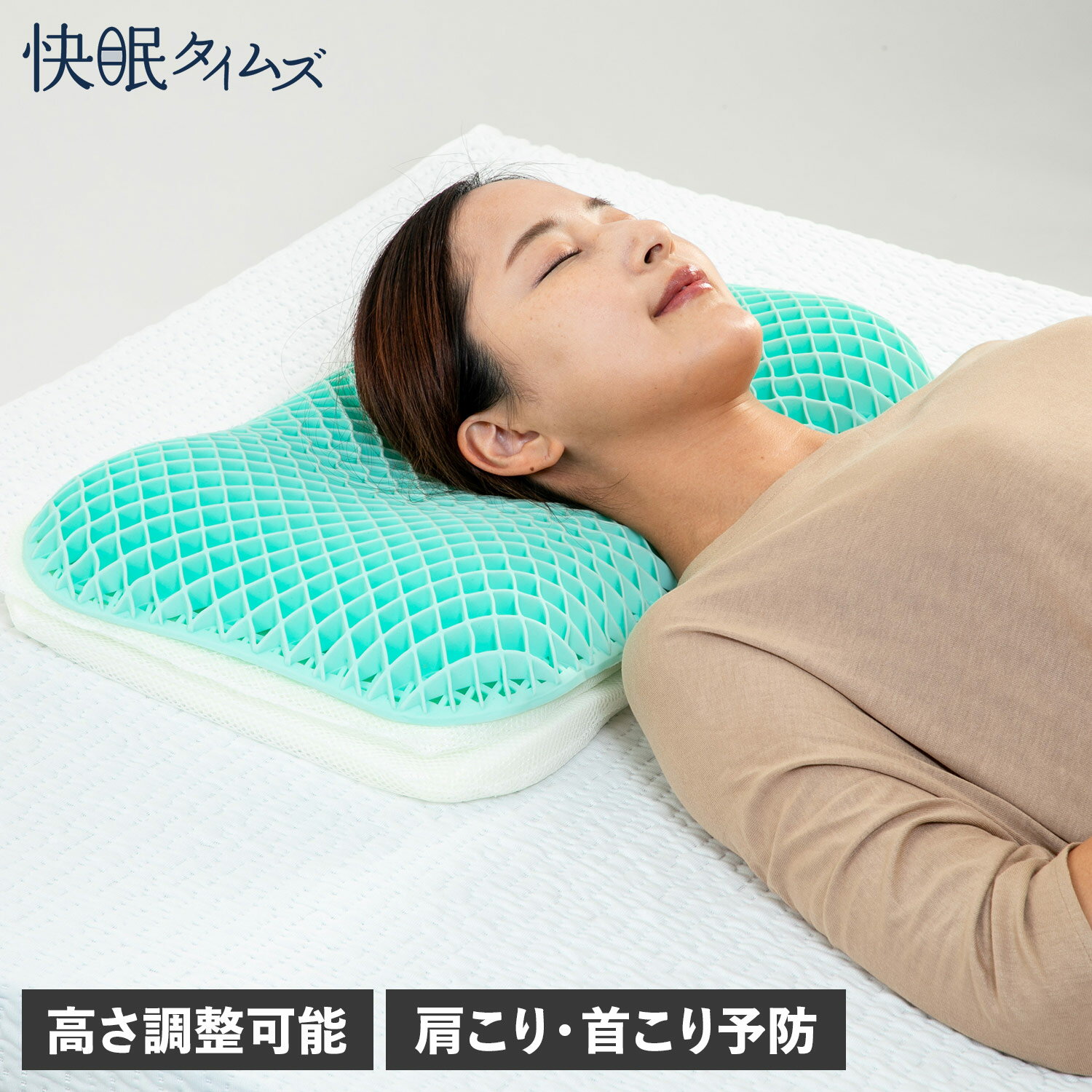 快眠タイムズ 枕 まくら マクラ 快眠枕 安眠 グッズ ピロー 高さ調整 肩こり 首こり 柔らかい TPE ジェル 通気性 高通気 洗える 寝返り 横向き 仰向け うつ伏せ いびき 予防 防止 高反発 KMT-PRP