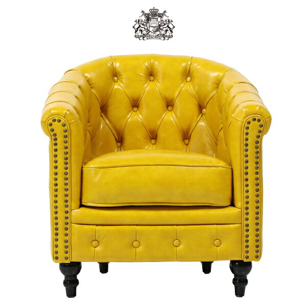 輸入家具 デザイナーズ そふぁ ソファー チェスターフィールドソファ(チェア) ソファーコンパクト 1人掛け 1人掛け 椅子 肘掛け ボタン タブチェア アンティーク ヴィンテージ レトロ チェスターフィールド 本革調 レザー 合成皮革 スタッズ 鋲 イエロー 黄色 VL1P69K