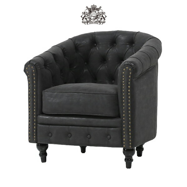 輸入家具 デザイナーズ そふぁ ソファー チェスターフィールドソファ(チェア) コンパクト 1人掛け 1人掛け 椅子 肘掛け ボタン タブチェア アンティーク ヴィンテージ レトロ チェスターフィールド 本革調 合成皮革 スタッズ ヴィンテージブラック VL1P71K ブラック 黒色