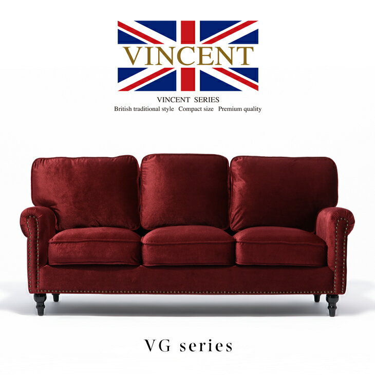 VINCENT ヴィンセントシリーズ ラウンジソファ 3人掛けソファ 3人用 トリプル コンパクト 英国アンティーク調 レトロ クラシカル ヴィンテージ調 おしゃれ かっこいい 店舗什器 応接室 レストラン ホテル サロン ラウンジ 木製 輸入家具 布地 赤 レッドベルベット VL3F280K