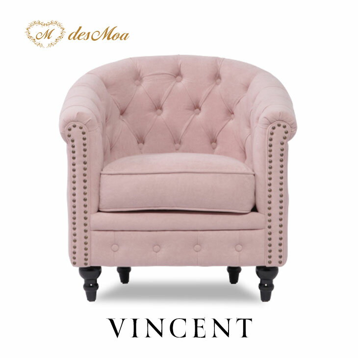ヴィンセント ソファー 店舗用 布製 一人掛け 1人掛けソファ 一人がけ 1人 1人用 アンティーク ソファ チェスターフィールド アンティーク調 コンパクトソファ サーモンピンク 布 おしゃれ インテリア 英国調 ヴィンテージ ビンテージ VN1F263K
