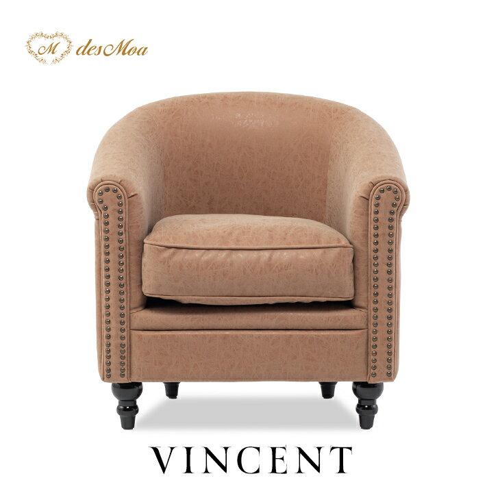 VINCENT ヴィンセントシリーズ ラウンジソファ 1人掛けソファ シングルソファー 1人用 コンパクト 英国アンティーク調 レトロ クラシカル おしゃれ かっこいい 店舗什器 応接室 レストラン カフェ ラウンジ ホテル サロン 木製 輸入家具 合成皮革 キャメル VLA1P39K