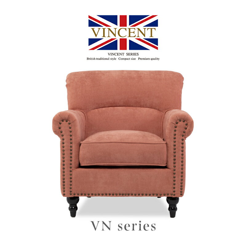 VINCENT ヴィンセントシリーズ ラウンジソファ 1人掛けソファ シングルソファー 1人用 コンパクト 英国アンティーク調 レトロ クラシカル おしゃれ かわいい 店舗什器 応接室 レストラン カフェ ラウンジ ホテル サロン 木製 輸入家具 布地 シャーベットピンク VL1F237K