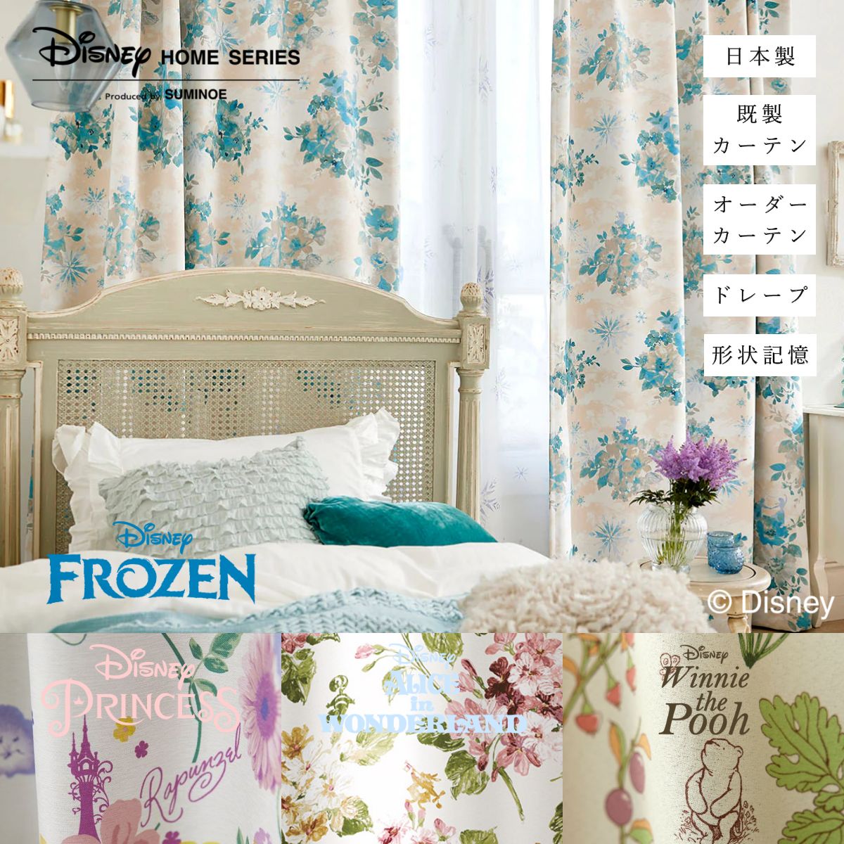 【 ディズニー カーテン ドレープ プリンセス フローズン アリス プー 】 既製カーテン オーダーカーテン ディズニー アリエル ベル シンデレラ ラプンツェル ジャスミン アナ オラフ エルサ 1cm刻み 遮光 カーテン 女の子 子供部屋 日本製 洗える