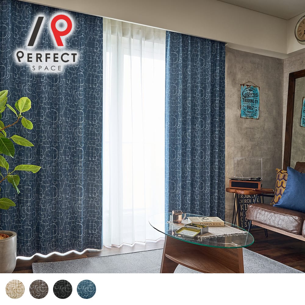 【店内全品ポイントアップ開催中】ブルックリン 完全遮光カーテン デコラティブなカリグラフィープリントの完全遮光カーテン <カリグラフィー>