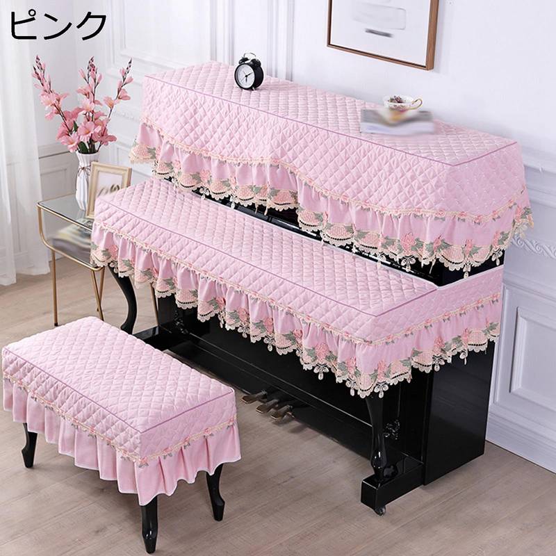ピアノカバー アップライト トップカバー キーボード 鍵盤カバー 欧風 フリル付き エレガント ヨーロッパ風 電子ピアノカバー ピアノ掛け 遮光 防塵 ピアノ保護 三点セット