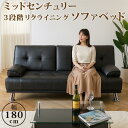 【期間限定価格C】 ソファベッド リクライニングソファ 幅180 3人掛け ブラック ミッドセンチュリー 黒 PVC 合皮 ドリンクホルダー付き 脚付 一人暮らし マンション用 自分時間