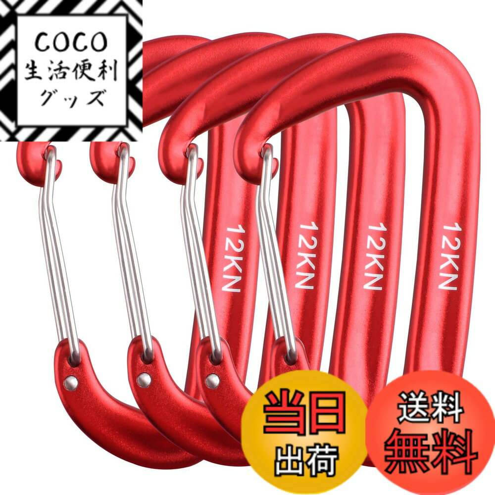 【送料無料】Azarxis カラビナ ロックカラビナ オートロック アルミ 耐荷重12KN 登山釦 Dリング ロッキング キーリング 脱落防止 超軽量 多機能 ハンモック キャンプ アウトドア 色:12kN-レッド(4個)、サイズ:8.5cm x 5cm