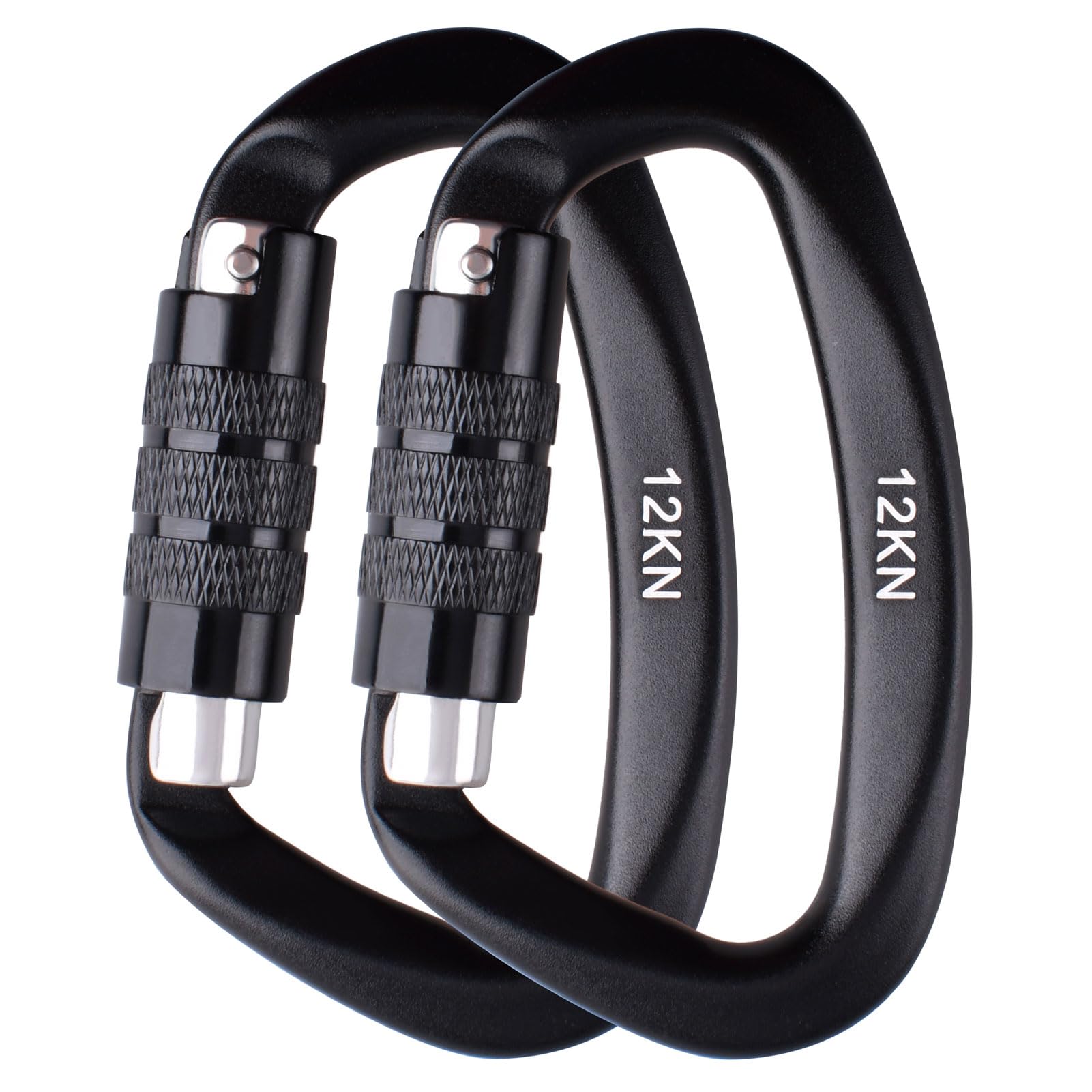 【送料無料】Azarxis カラビナ ロックカラビナ オートロック アルミ 耐荷重12KN 登山釦 Dリング ロッキング キーリング 脱落防止 超軽量 多機能 ハンモック キャンプ アウトドア 色:12kN-ブラック(2個)、サイズ:縦8x横4.7cm