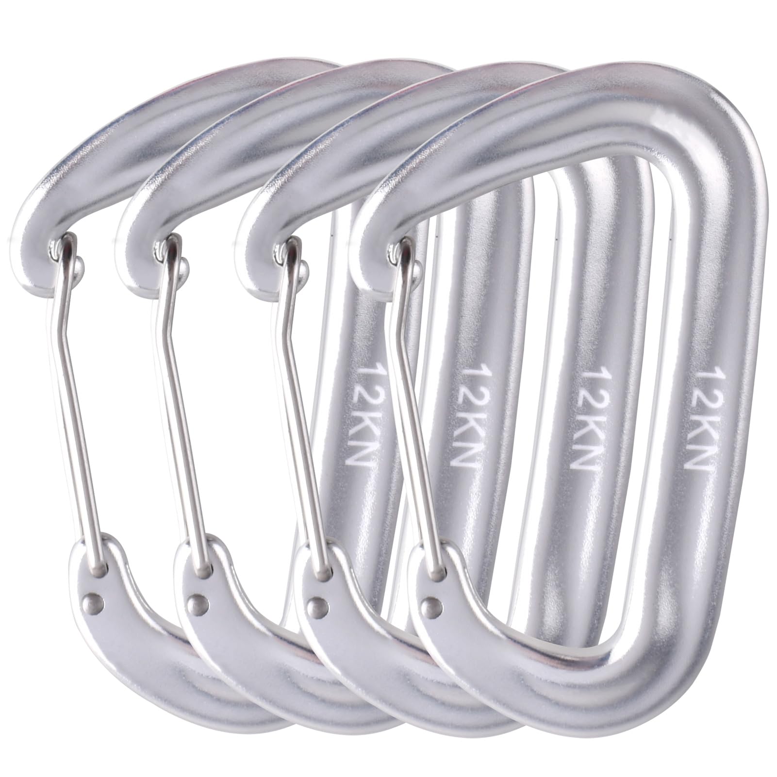 【送料無料】Azarxis カラビナ ロックカラビナ オートロック アルミ 耐荷重12KN 登山釦 Dリング ロッキング キーリング 脱落防止 超軽量 多機能 ハンモック キャンプ アウトドア 色:12kN-シルバー(4個)、サイズ:8.5cm x 5cm