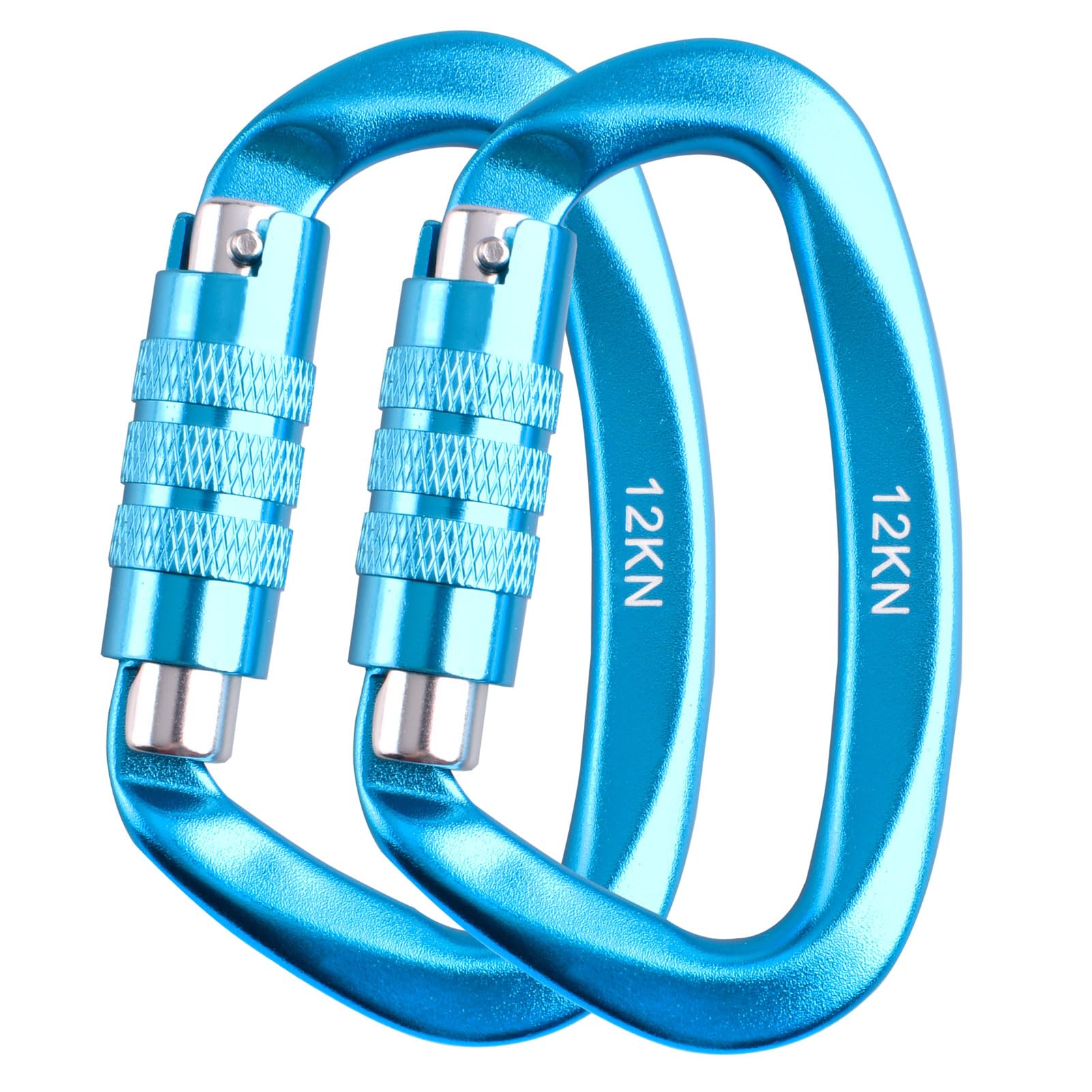 【送料無料】Azarxis カラビナ ロックカラビナ オートロック アルミ 耐荷重12KN 登山釦 Dリング ロッキング キーリング 脱落防止 超軽量 多機能 ハンモック キャンプ アウトドア 色:12kN-スカイブルー(2個)、サイズ:縦8x横4.7cm