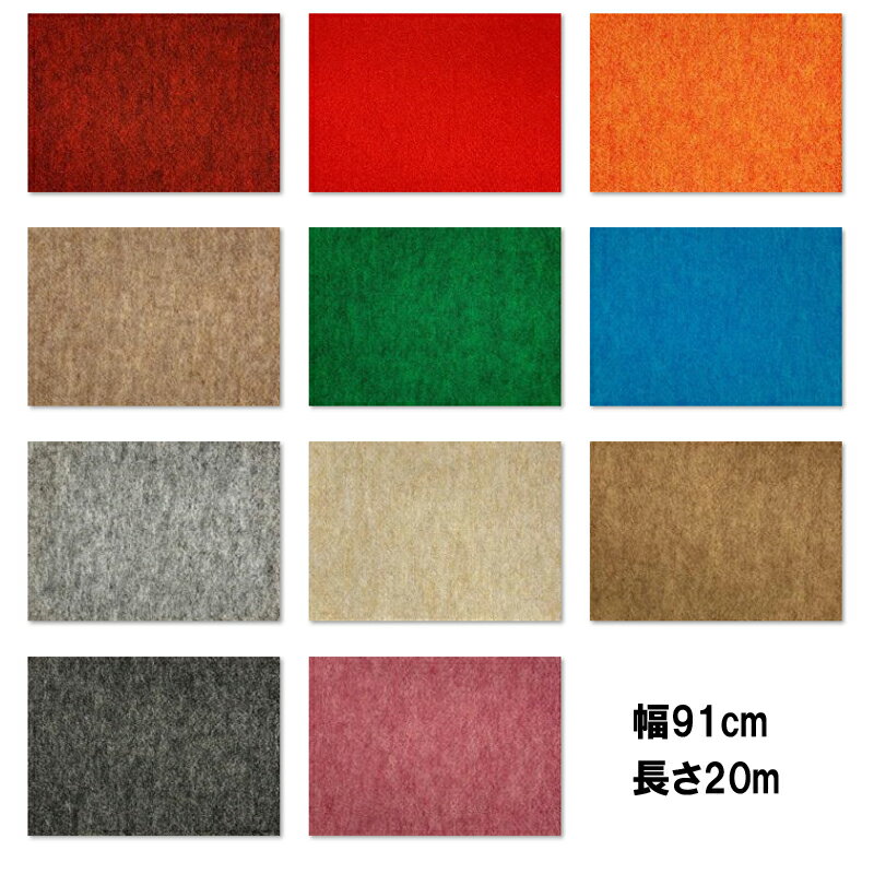 ニードルパンチカーペット リックパンチ ラバータイプ 幅91cm カラー選択 11色 長さ20m ロール反 展示会 イベント 敷物 絨毯 Lク 代引不可