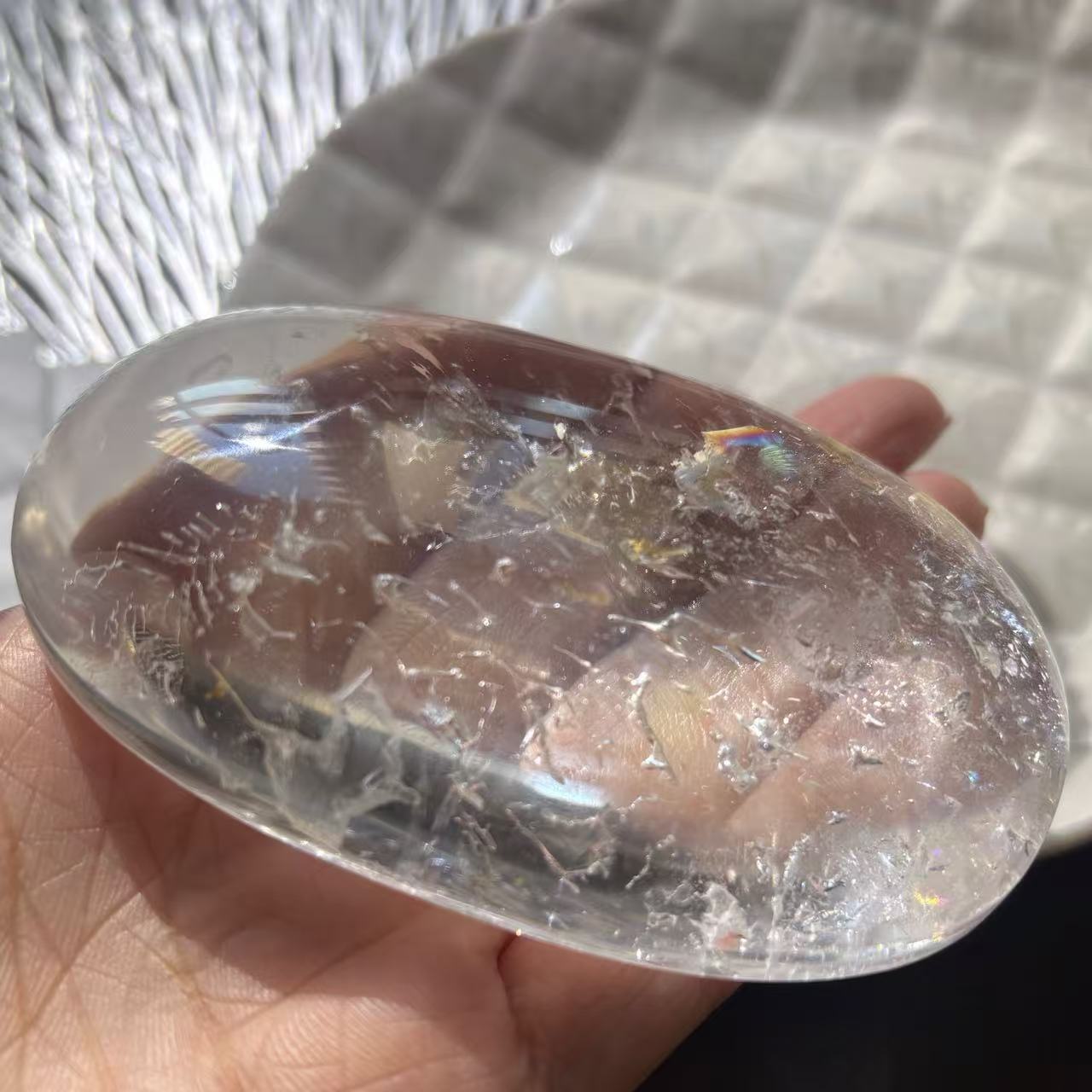 大!高品質 天然石 負晶 本水晶 クリアクリスタル 握り石 タンブル 置物 レインボー 空洞 負晶水晶 虚晶水晶 ネガティブクリスタル