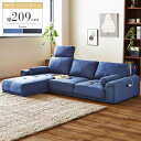 ★10%OFF★ 組み合わせ自由自在にできるカウチソファ ハリーII 幅209cm ブルー ダークグレー 3人 3P 三人 L字 セパレート 分割 組み合わせ 組合せ 布 ファブリック 無地 単色 ボンネル コイル コンセント 青 ソファ 完成品 輸入品