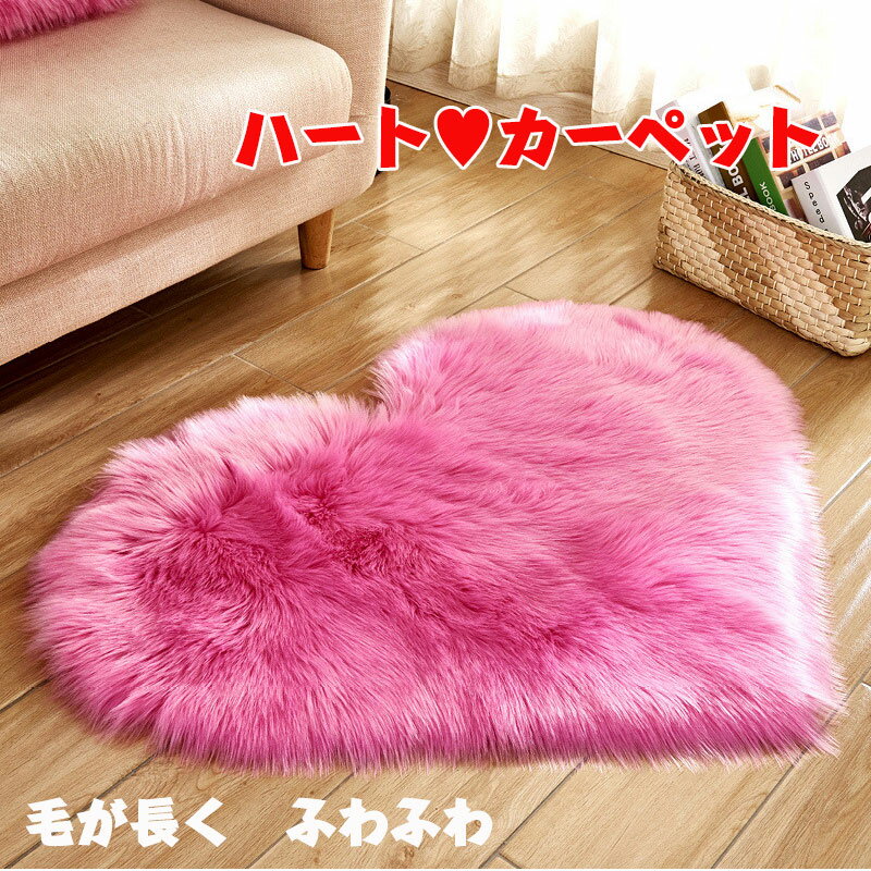 送料無料 ラグ カーペット ラグマット フェイクファー ハート型 30×40cm 無地 もこもこ ふわふわ あったか 暖かい 可愛い お洒落 シンプル 絨毯 じゅうたん 敷物 インテリア リビング 寝室 子供部屋