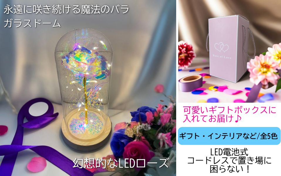 ガラスドーム 薔薇 ローズライト 造花ライト 枯れない花 バラ ギフト プレゼント お祝い LED 電池 バレンタイン 母の日 敬老日 誕生日 結婚 記念日 クリスマス 彼女 花 入学祝い 贈り物 フラワーライト