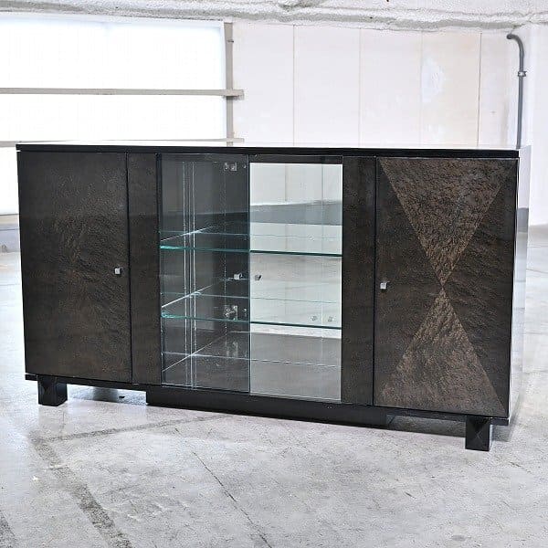 IDC大塚家具 「スプレンダー / SPLENDOR」サイドボード バーズアイメープル ガラス リビング ダイニング 書斎 玄関 客間 収納 飾り棚【中古家具/中古インテリア/USED家具ユーズド家具/リサイクル】