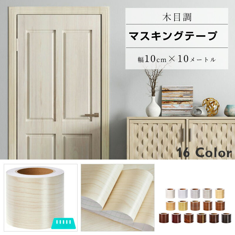 木目調 マスキングテープ 木目 テープ 幅広 幅10cm×10m 木口テープ 白 マスキングテープ 木目シール リメイクシート木目 テープ フローリング 補修 木目調カッティングシート ウッド パネリング はがせる クロス ウォールステッカー DIY 壁紙 シール 道具付き