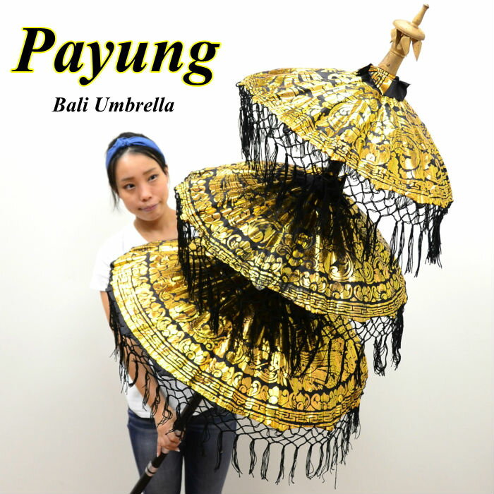 アジアン 雑貨 バリ雑貨 パユン/バリ傘 3段 ブラック(全4色) H220cm OTH-0003-BK 【アジアン雑貨 置物 業務用 店舗用 ディスプレイ 祭礼 バリの傘 おしゃれ 大きい オブジェ 飾り パユン アジアンカフェ 飲食店 店舗様お勧め】