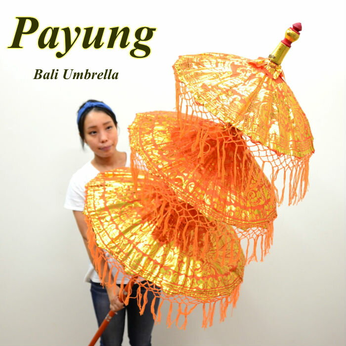 【送料無料!】バリ島の傘パユン・オレンジ・高さ約116cm / バリ傘 装飾傘 傘 バリヒンズー ヒンドゥー 寺院飾り オブジェ 置物 バリインテリア アジアンインテリア バリ雑貨 アジアン雑貨