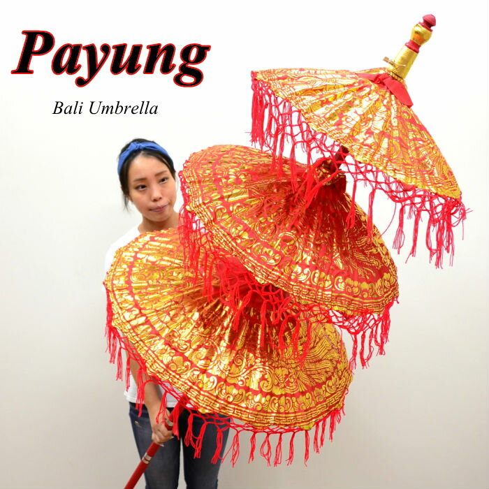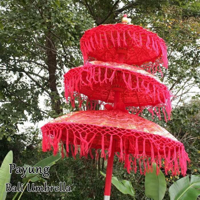 【法人様専用】 アジアン 雑貨 バリ雑貨 パユン/バリ傘 3段 レッド(全4色) H220cm OTH-0003-RE 【アジアン雑貨 置物 業務用 店舗用 ディスプレイ 祭礼 バリの傘 大きい おしゃれ オブジェ 飾り パユン アジアンカフェ 飲食店 店舗様お勧め】