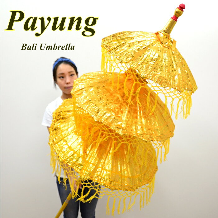 アジアン雑貨バリ傘(パユン) 迫力の3段 イエロー(H220cm) バリ島 バリ雑貨 エスニック アジアンテイスト リゾートインテリア モダンリゾート バリ風装飾 店舗内装 店舗外装 多国籍 ベンジョ−ル パユン オブジェ 置物 OTH-0003-YE