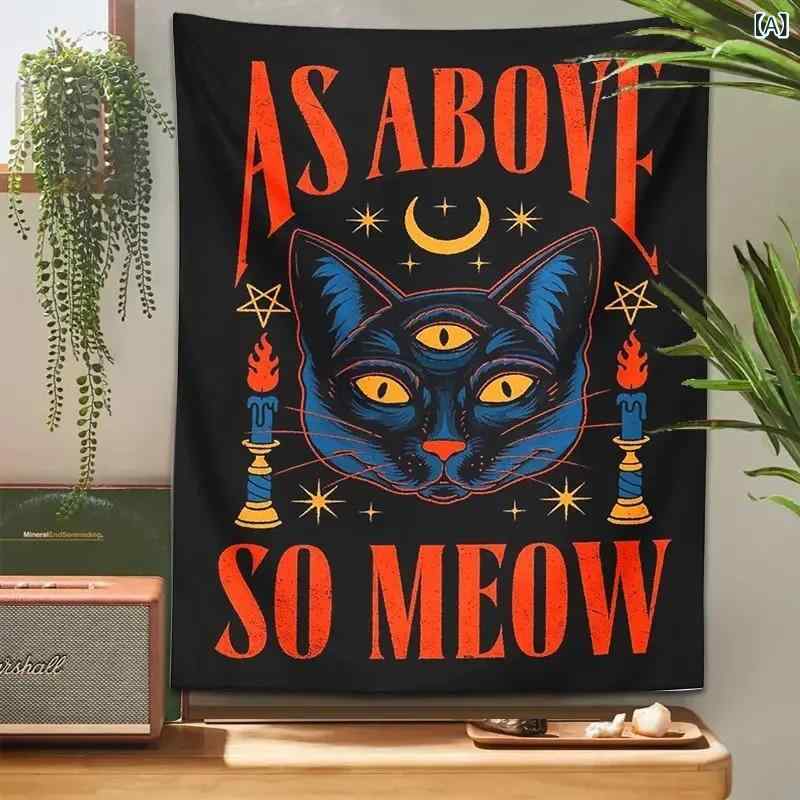 タペストリー スモークキャット タロット柄 レトロ ビンテージ調 ミステリアスブラック 壁飾り ウォールアート ポリエステル製 北欧風 長方形 インテリア リビング 寝室 部屋飾り