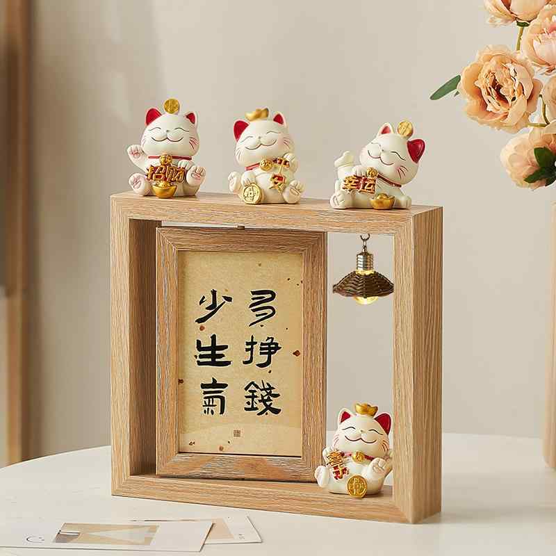 イン ミニチュア フォトスタンド オブジェ 縦型 招き猫 キャット 写真立て ライトブラウン ピッグ ペット 記念日 家族写真 子供