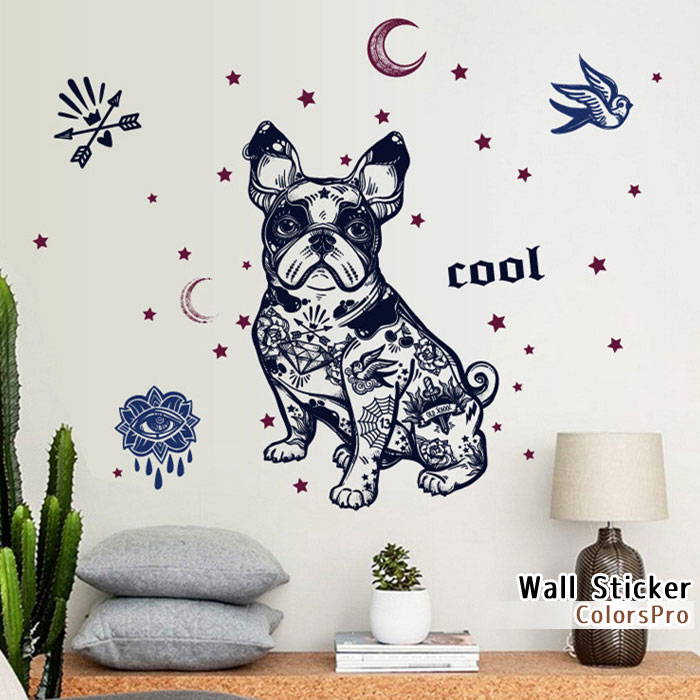 ウォールステッカー 犬 フレンチブルドッグ フレブル ブルドッグ エスニック cool 貼ってはがせる 壁飾り インテリアシール 壁デコシール Wallsticker
