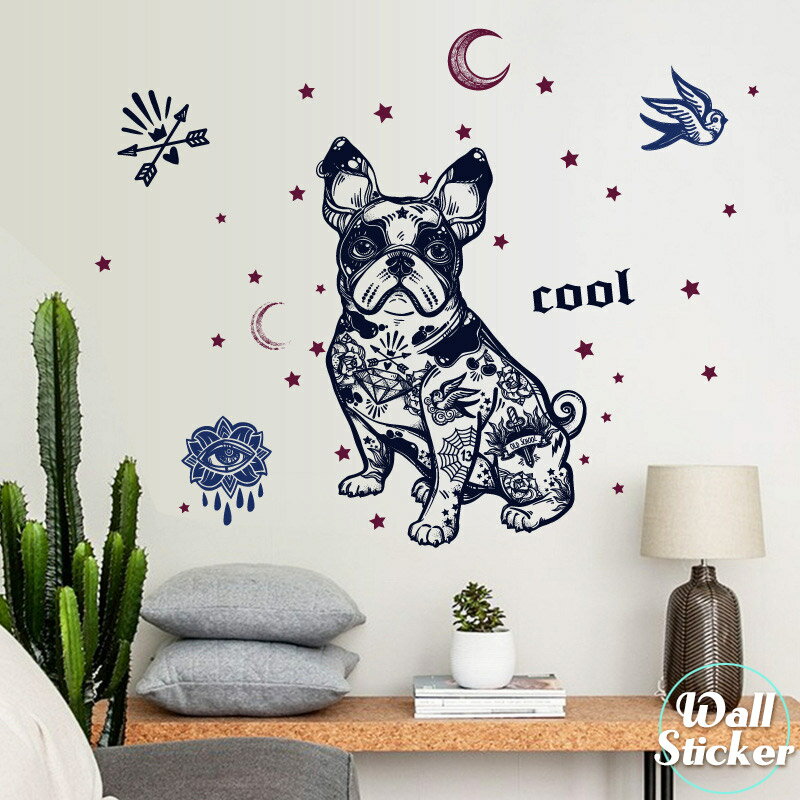 ウォールステッカー 犬 フレンチブルドッグ フレブル ブルドッグ エスニック cool 貼ってはがせる 壁飾り インテリアシール 壁デコシール Wallsticker