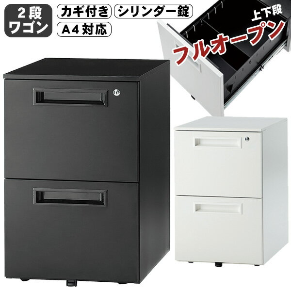 ワゴン 2段 鍵付き サイドキャビネット オフィスワゴン スチールワゴン ホワイト ブラック キャビネット デスク下 デスクワゴン ファイルワゴン 幅395mm オフィス家具 会社 【送料無料】