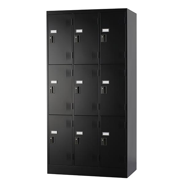 【受注生産品】 9人用 ブラック スタンダードロッカー 鍵付き 9人用タイプ 3列3段 シリンダー錠 TLK-S9-MB ロッカー ブラック色 黒色 スチールロッカー スチール製 オフィスロッカー 収納 更衣ロッカー ブラックロッカー 黒ロッカー オフィス家具 【日本製】【送料無料】