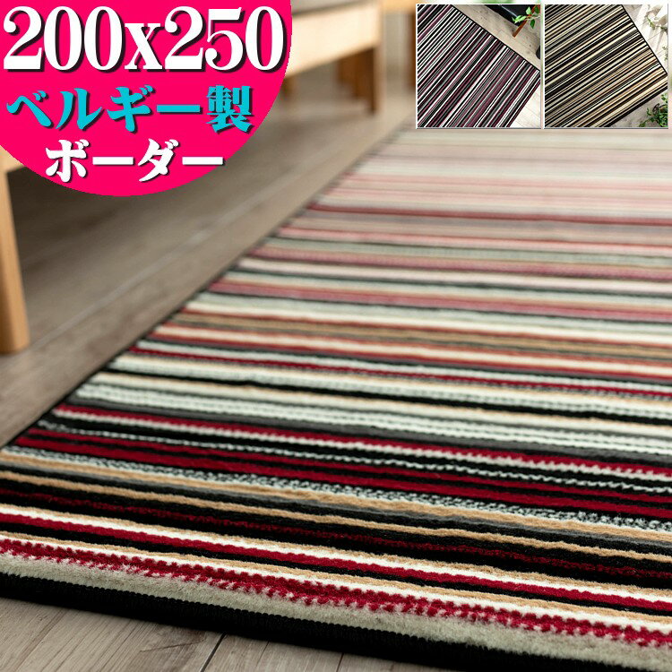 【11/22限定!960円OFFクーポン】 ラグマット 200×250 約 3畳 大 おしゃれ ラグ ストライプ ウィルトン織 絨毯 じゅうたん レッド ブラック バイオレット 北欧 モダン カジュアル ボーダー シンプル カーペット オールシーズン 長方形 リビング