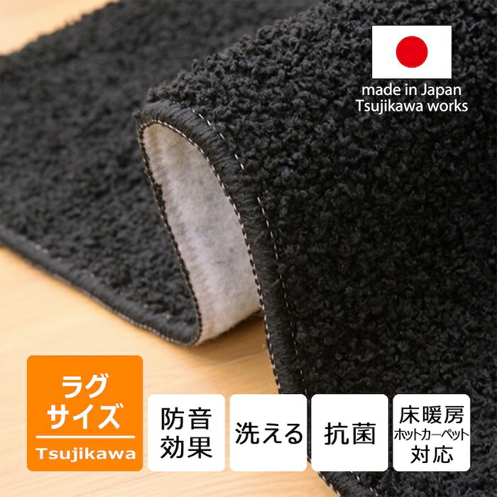 ラグ シャギー 黒 ブラック 1.5畳用 2畳用 3畳用 4畳用 サイズ 日本製 厚手 洗える 防音 ふかふか 抗菌 おしゃれ 一人暮らし 子供部屋 カーペット 正方形 長方形 フローリング ダイニング リビング やわらか マット 130 190 240 290 丸巻き保管 辻川産業株式会社 Tsujikawa