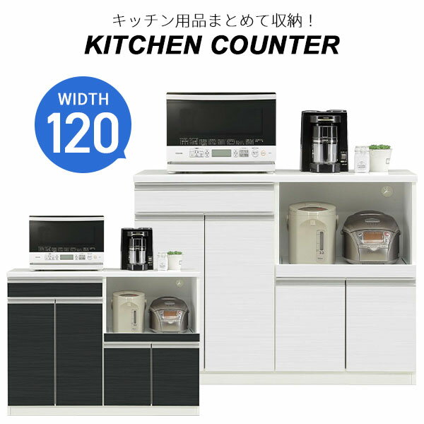 キッチンカウンター レンジ台 レンジボード 家電収納 食器棚 カップボード 幅120 木目調 国産 完成品 作業台 コンセント ホワイト ブラック 台所 キッチン おしゃれ シンプル モダン 大川家具