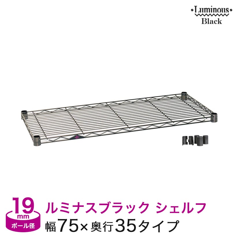 \★P10倍★/ 棚 ラック スチールラック 収納 メタル ルミナス スチール棚 ルミナスブラック パーツ シェルフ 棚板 幅75 奥行35 [スリーブ付] ポール径19mm BN7535