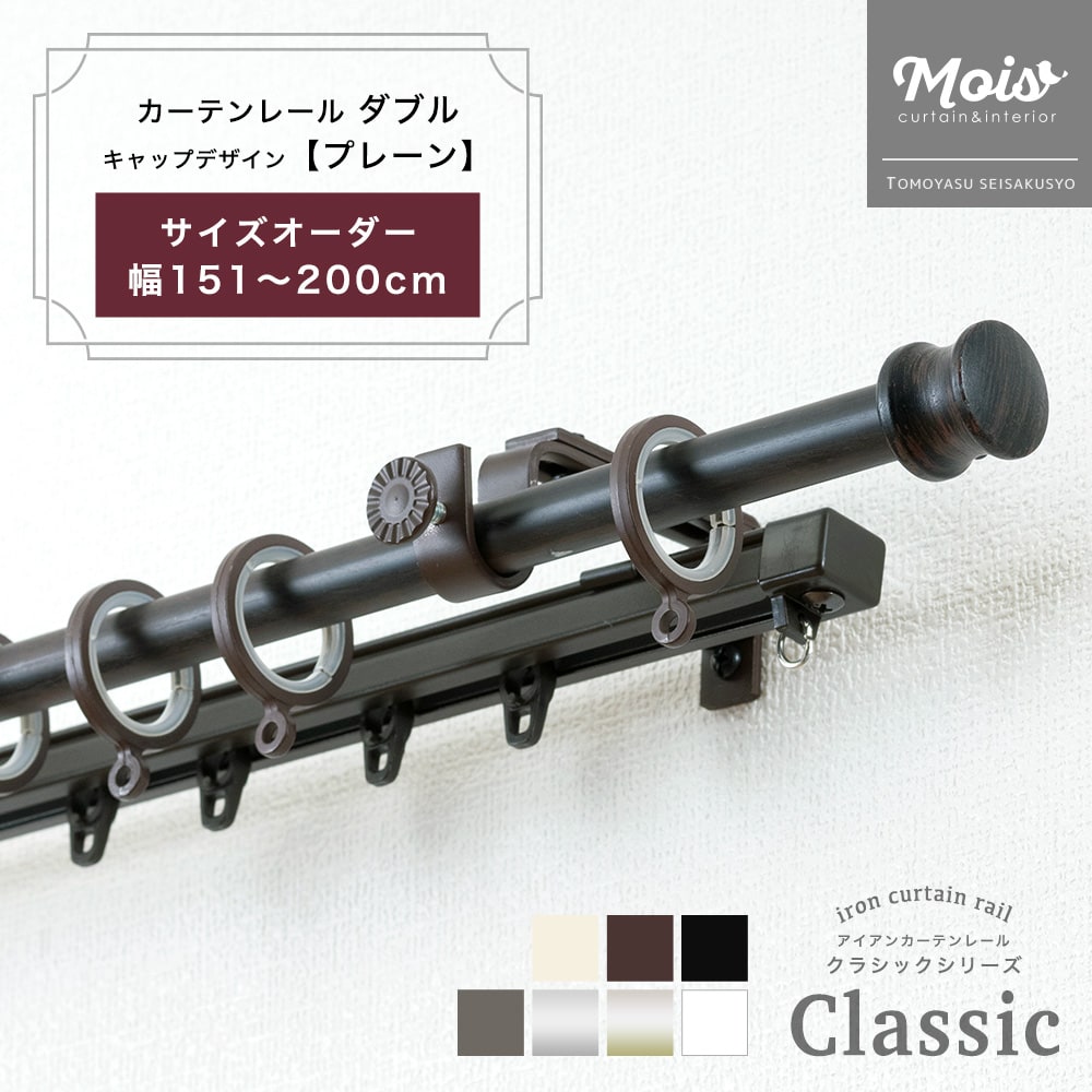 [ブラックフライデー限定クーポン配布] カーテンレール ダブル 装飾 ダブル 機能レール付きダブル サイズオーダー 2mまで 151〜200cm 1.51〜2m /プレーン/ アイアンカーテンレール カーテンレール おしゃれ ブラック 北欧 洋風 友安製作所《即日出荷》 C-F-3