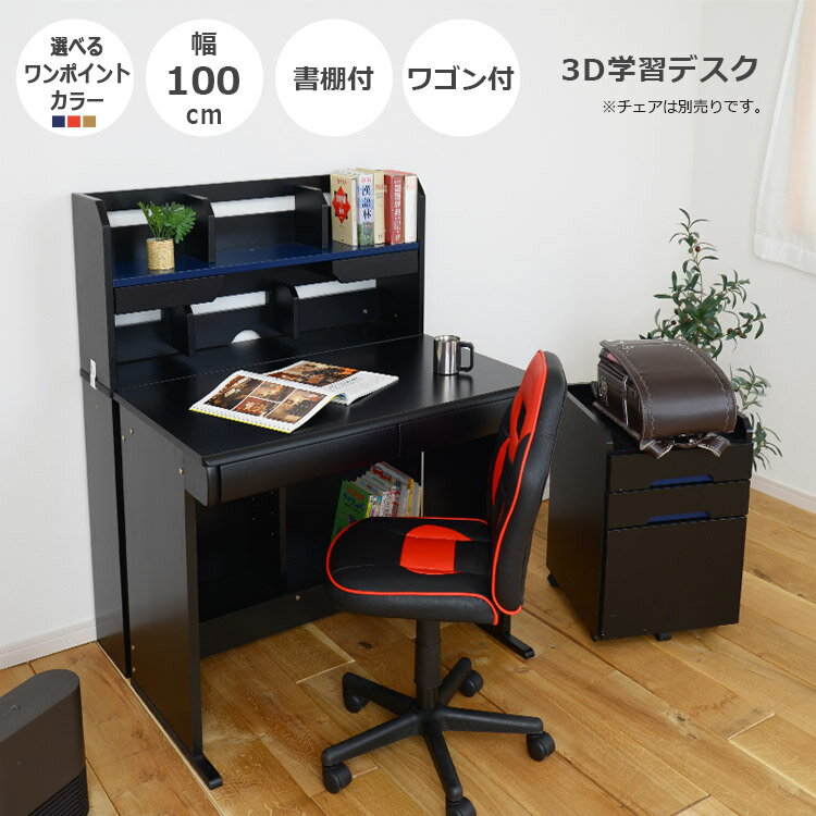 \全商品ポイント10倍☆ブラックフライデー開催/ 学習デスク セット 3点セット 学習机 システムデスク 勉強机 書棚 学習デスク3点セット コンパクト ブラック 組替え デスクセット 机 子供 3Dデスク ワゴン 黒 ゴールド レッド ネイビー 木製 大人 男の子