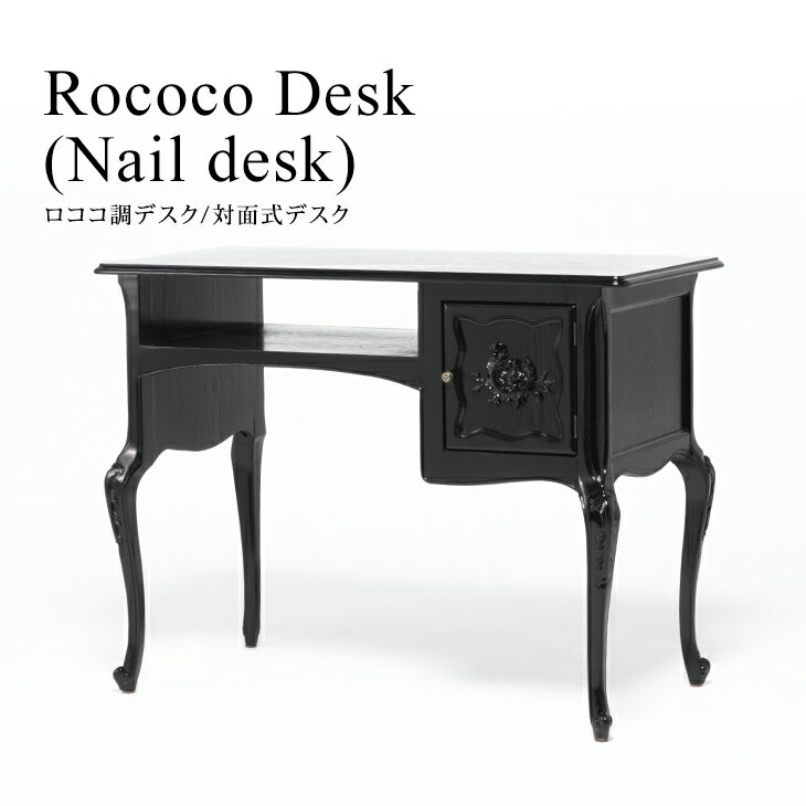 ロココ調家具 アンティーク 机 デスク 対面式 ネイル用デスク アンティーク調 受付デスク ライティングデスク 収納付き ロココ調 ブラック 木製 おしゃれ 店舗什器 ロココ調家具 VTA7018-8