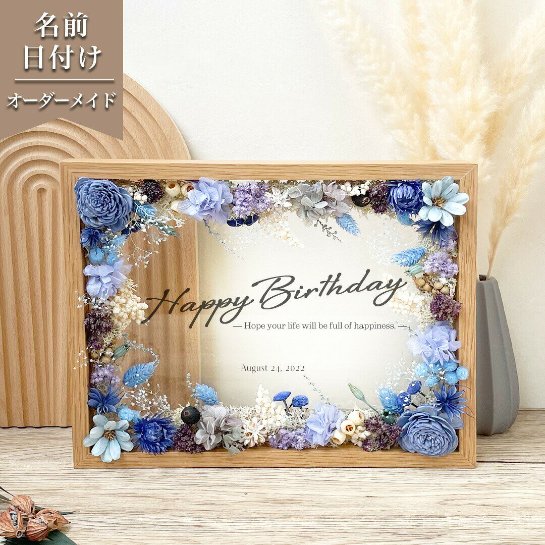 商品情報素材パネル部分:ガラス飾り:プリザーブドフラワー ドライフラワー無料サービス・名入れ注意・自然素材を使用しているため花や葉の形により全く同じ形の物にはなりません。・花材は仕入れの状況により異なるものを使用する場合があります。・繊細な花材を使用しているため配送時に多少欠けてしまうことがあります。・経年により花材の色が徐々に変わっていきます。★レビュー特典1,000円クーポン★【お祝いメッセージボード 誕生日祝い i12】誕生日 プリザーブドフラワー フラワー ドライフラワー メッセージボード 花 花束 バラ お祝い 記念日 プレゼント 贈り物 ギフト 恋人 彼氏 彼女 家族 先輩 後輩 祖父 祖母 友人 友達 退職 卒業 【誕生祝い】【名入れ可能】【プリザーブドフラワー】 商品説明文---お祝いメッセージボード---落ち着いた色味の木製フレームを使用し、ガラス部分に印字したメッセージをドライフラワーやプリザーブドフラワーの自然素材で華やかに彩りました。自然素材を使用したナチュラルなデザインで、日頃の感謝の気持ちやお祝いのメッセージを記念日後もインテリアとして飾れるメッセージボードです。【カラー】全6色展開で飾る場所の雰囲気に合わせてお選び頂けます。ピンク / ブルー / イエロー / グリーン / ホワイト/パープル【サイズ】S:215×166(mm)M:245×192(mm)L:320×246(mm)XL:415×317(mm)【デザイン】・中央のガラス部分にメッセージを印刷できます。各4種の印字デザインからお選びください。【印字メッセージ】誕生祝いHappy Birthday Hope your life will be full of happiness.(和訳 お誕生日おめでとうこれからの人生が幸せでいっぱいであることをお祈りしております。)指定の日付けを印刷出来ます。例:○○○○年〇月〇日日 :August 24,2022 :2022/08/24 等【印字メッセージカラー】白or黒【無料でお付けできるオリジナルメッセージカード】8種類のデザインの中からお選びいただきオリジナルメッセージカードも付属できます!こちらでメッセージを印字することも可能ですのでメッセージ必要な方は備考欄にてメッセージをご記入ください。・厚さがあるフレームなので自立することができます。・後ろに壁掛け用の金具も付いているので壁に飾ることもできます。ご注意事項自然素材を使用しているため花や葉の形により全く同じ形の物にはなりません。花材は仕入れの状況により異なるものを使用する場合があります。繊細な花材を使用しているため配送時に多少欠けてしまうことがあります。経年により花材の色が徐々に変わっていきます。2枚のガラスをスライドして引き出す事のできるフレームです。1枚目のガラスに装飾して花材を貼っていますので引き出すことは出来ません。2枚目のガラスは引き出し可能ですが印刷部分が削れてしまう恐れがありますので引き出される際は十分にご注意ください。取り出し部分にテープを貼っています。gt1 gf1 2