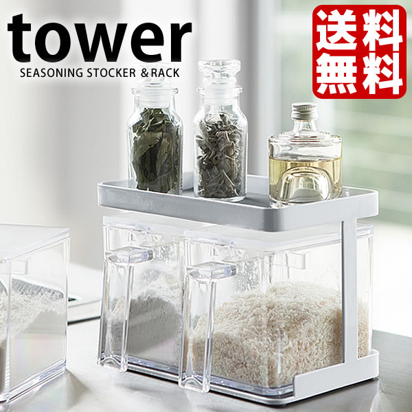 【2月20日ポイント最大10倍祭】調味料入れ 調味料ストッカー&ラック tower タワー 山崎実業 yamazaki 棚 調味料ラック 収納 2個セット スパイスラック キッチン カウンター収納