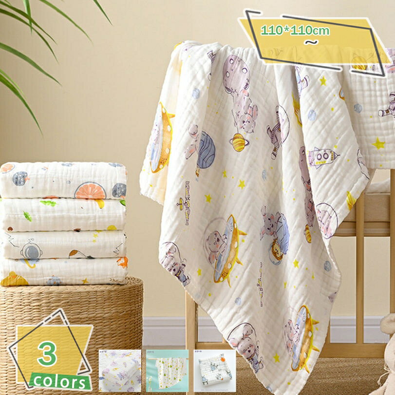 ベビーバスタオル ガーゼケット ガーゼ バスタオル 綿100% 6重ガーゼ ベビータオル 110×110cm 夏 軽量 吸水速乾 赤ちゃん 沐浴 湯上りタオル キッズ 子供 新生児に ベビー 出産祝い 優しい肌触り 通気性抜群 敏感肌 かわいい 夏掛け 洗える 送料無料