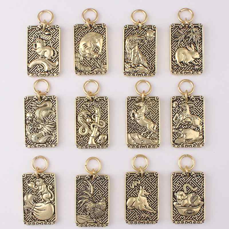 ペンダントトップ レトロ 真鍮 キーホルダー 銅 固体 十二支 干支年 車 キー チェーン ペンダント メンズ レディース用