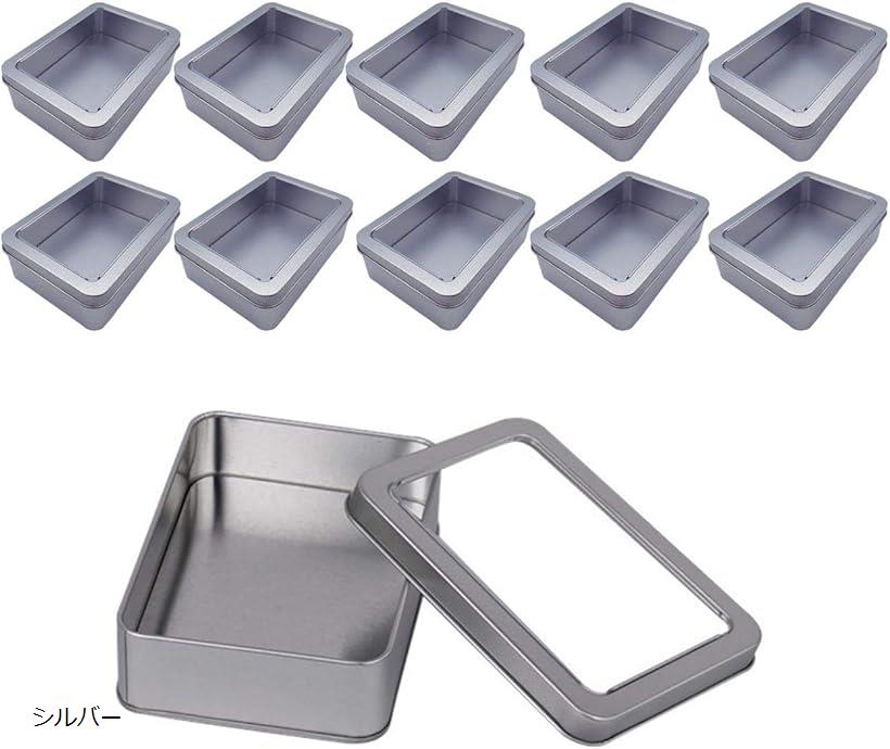 ブリキ缶 ケース ミニ ふた 収納ケース ふた付き 缶ケース 小物入れ ミニケース 透明 長方形 ふた透明 10個セット シルバー