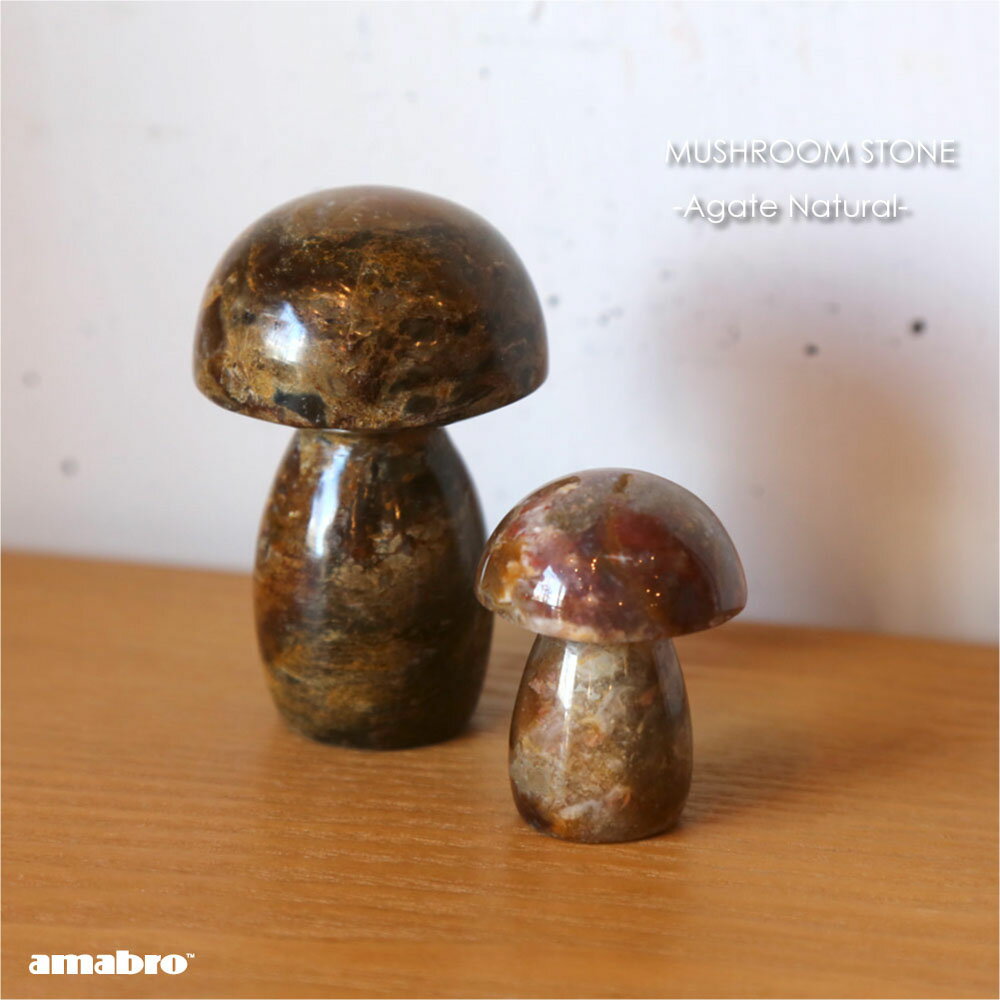 amabro MUSHROOM STONE -Agate Natural- オブジェ 置物 きのこ マッシュルーム ディスプレイ 玄関 変わった 店 店舗 石 瑪瑙 大理石 メノウ 宝石 おしゃれ かわいい シンプル 和 和モダン モダン アンティーク インテリア 小物 グレー ブラウン 【HL_NEW_18】